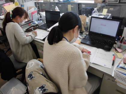 4月20日(水) 一人一人と向き合って 公開日 2022/04/20 更新日 2022/04/20 人権・いじめ対策 1学期が始まり3週目になります。授業のない時間、学級担任の先生は、生徒が書いた「毎日の学習と生活の記録」に目を通してコメントを書いています。こうした毎日のやり取りの中で、生徒が興味をもっていることや、困っていることなどを知り、楽しみを共有したり、悩みに対するアドバイスを送ったりしています。