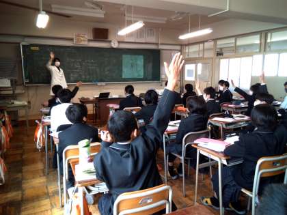 理科では、前回の授業でアブラナの花を観察したので、花のつくりについて学習していました。