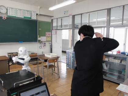 78組の技術の授業では、chromebookを使ってカレンダーを作成しています。行事の日程を入れたり、画像を取り込んだりしました。また、ペッパー君と交流をして楽しむ姿も見られました。カレンダーが完成する日が今から楽しみです。