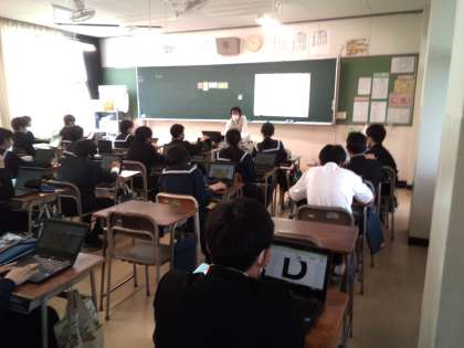 2年生の家庭科の授業では、1人1台のクロームブックを使って学習をしていました。