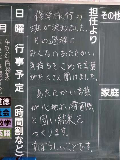あたたかい言葉が、クラスをはじめとする生活集団を良い雰囲気にします。