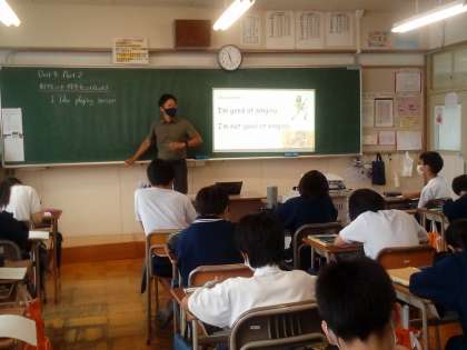 今日の1年生の英語の授業は、「動詞+ing」の学習をしていました。