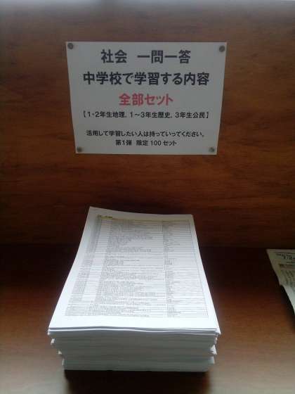 また、3年生の廊下には自主勉強用に、これまでの内容の復習プリントが置かれていました。