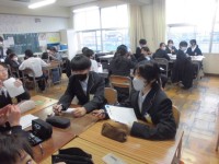 1年生の体育の授業の様子です。生徒たちは、縄跳びのテストに向けて、クラスメイトからアドバイスをもらいながら苦手な種目の練習に取り組みました。縄に何度も引っかかっても、何度も挑戦する前向きな姿がたくさん見られました。