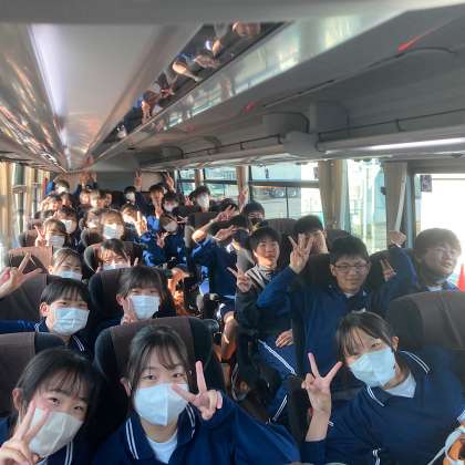 バスの中でも元気いっぱい! 添乗員さん、運転手さんにしっかり挨拶しました!