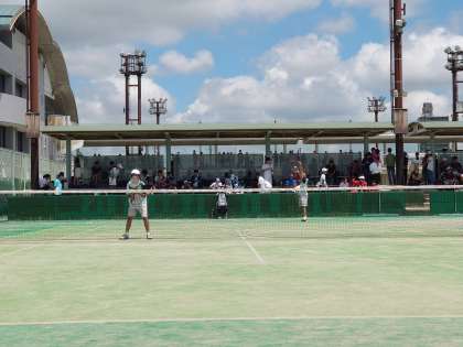 熱中症が心配されるほどの晴天の中、夏の総合体育大会のソフトテニス団体戦が一宮市テニス場にて行われました。初戦先日個人戦で準優勝であった木曽川中との試合、白熱した試合でしたが1−2で敗退し、3年生の夏がすべて終了しました。