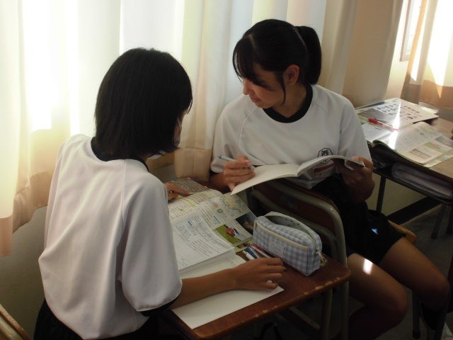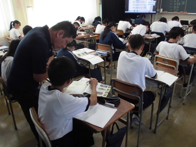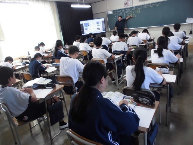 社会科の授業で、中部地方について学んでいます。今日は、東海で発展している産業について、その特色を資料から読み取りました。そして、近くの友だち同士で意見交換をし、再度、自分の考えをまとめました。