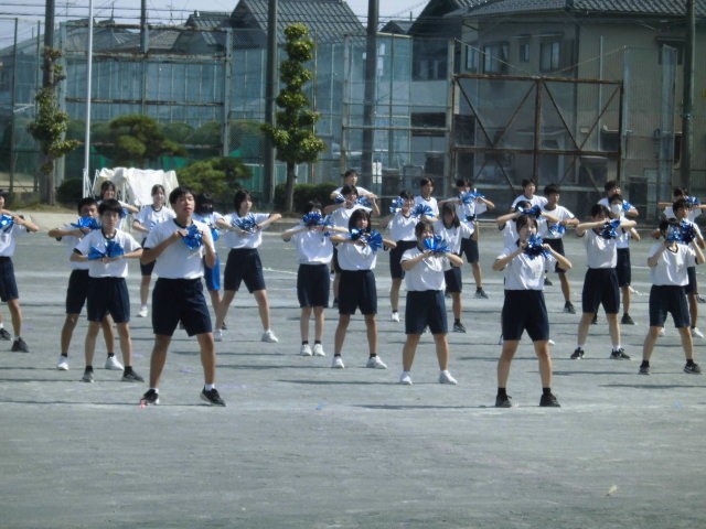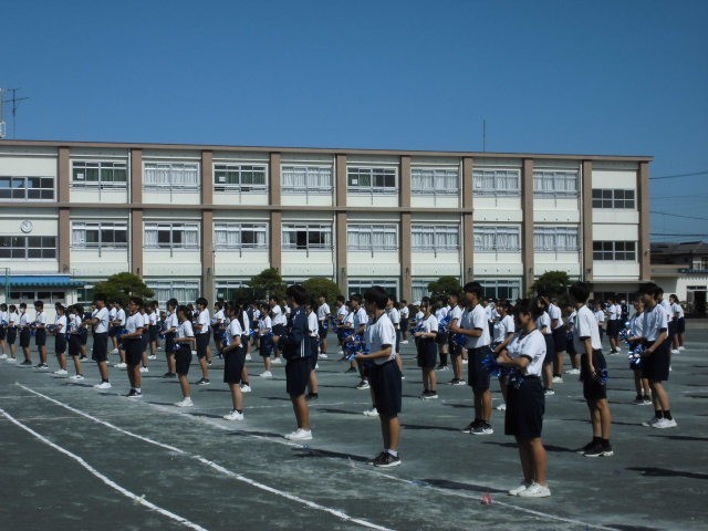 3年生の最後の表現練習。2学期が始まる前から振り付けを考え、みんなで教え合ってつくってきました。朝練で特訓することもありました。明日の本番は、自分たちの思いのすべてを動きや声で表現します。中学校最後の体育祭に全力を注ぎます。