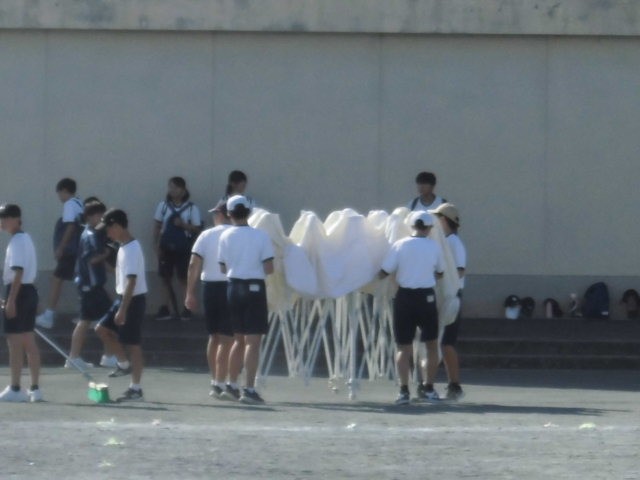 明日の体育祭に向けて、1・2年生が下校した後で3年生が準備をしてくれました。テントの設営や、グランドの整備、保護者の方の自転車置き場の設営等をしっかり行ってくれました。3年生のみなさんのおかげで体育祭当日を迎えることができます。さすが最高学年、ありがとう。