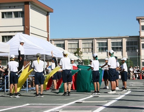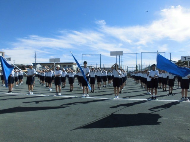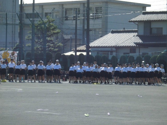開会式の入場に先立ち、決起集会を行いました。群団スローガンを叫び、みんなの士気を高めます。