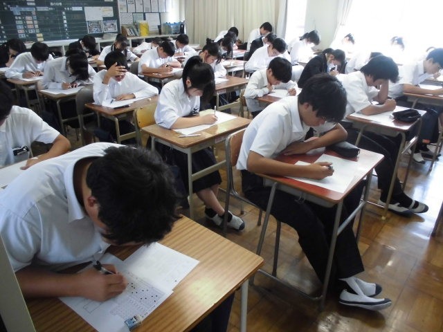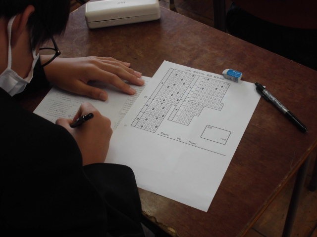 英語の授業で単元テストを行っています。解答用紙はマークシート形式です。公立高校の学力検査の解答形式にも慣れておかなければなりませんね。