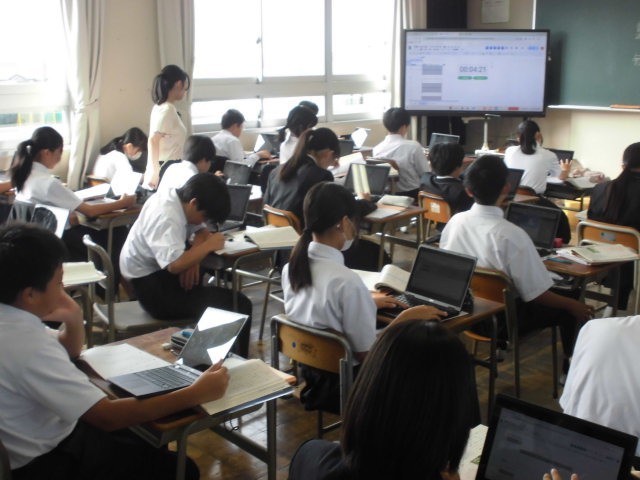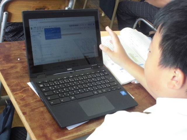 国語の授業で「『言葉』をもつ鳥、シジュウカラ」を読んでいます。筆者の検証方法や結論には説得力があるかどうかを、文章を読んで話し合い、文章の構成や展開の効果について考えました。