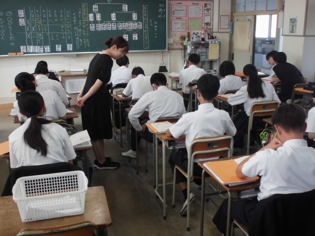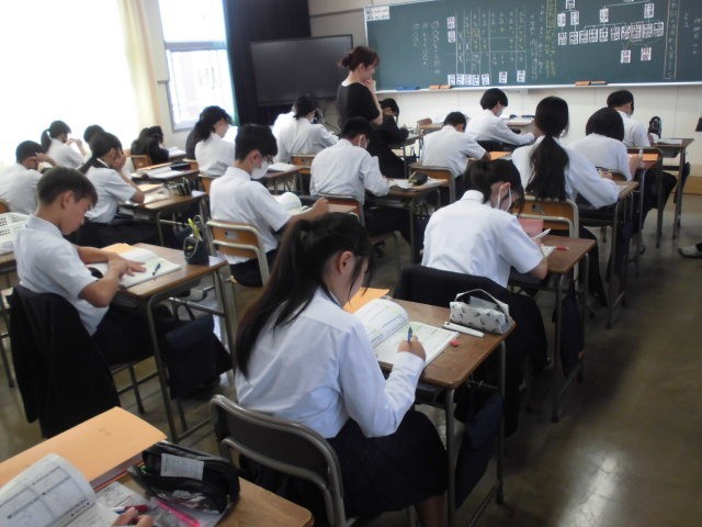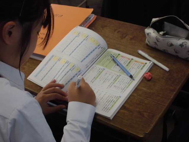 国語の授業で文法について学んでいます。今日は形容動詞の活用について勉強しました。形容動詞が文中でどの活用になるかは、用いられ方によって決まります。学んだことが身についているかを、練習問題を解いて確かめました。