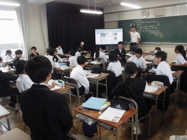 一宮市では、アドバイザーが直接学校に出向いて先生の授業を参観し、よりよい授業になるように助言をする「訪問アドバイザー研修」を行っています。今日は、西成中学校にもアドバイザーの方に来ていただき、社会科の授業を見ていただきました。参観後は、適切な資料提示や板書とICT機器のバランスなどについて助言をいただきました。生徒の皆さんにとってわかりやすく楽しい授業を目指して、明日からの授業に生かしていきます。