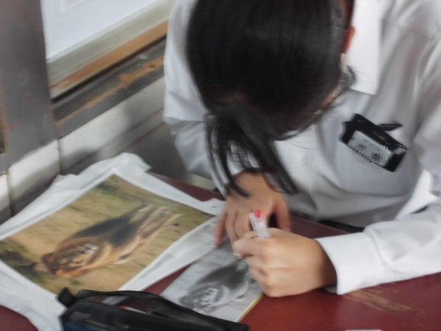美術の授業で点描を学んでいます。今日は人物や動物、車など、描きたいものをイラストボードに転写しました。ただ写すだけではなく、背景や構図などを工夫します。どんな作品ができるか楽しみです。