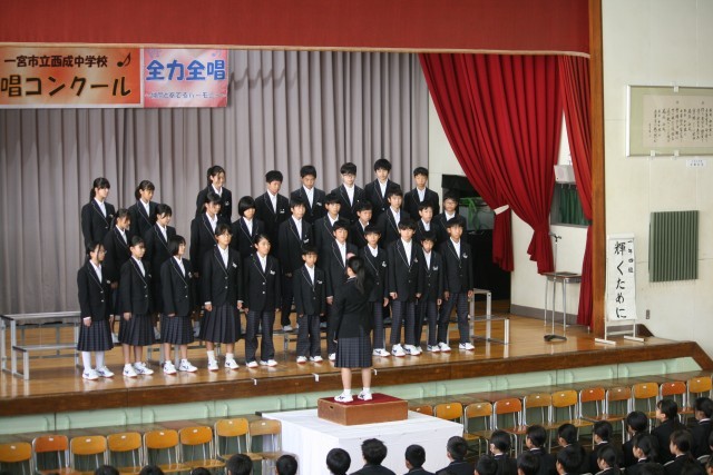 本日1年生にとっては西成中で初めての合唱コンクールが開催されました。本格的に練習が始まってから約3週間での本番。どのクラスの生徒も緊張の面持ちで、今日をむかえました。