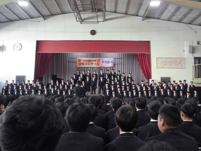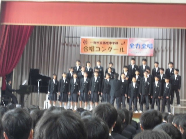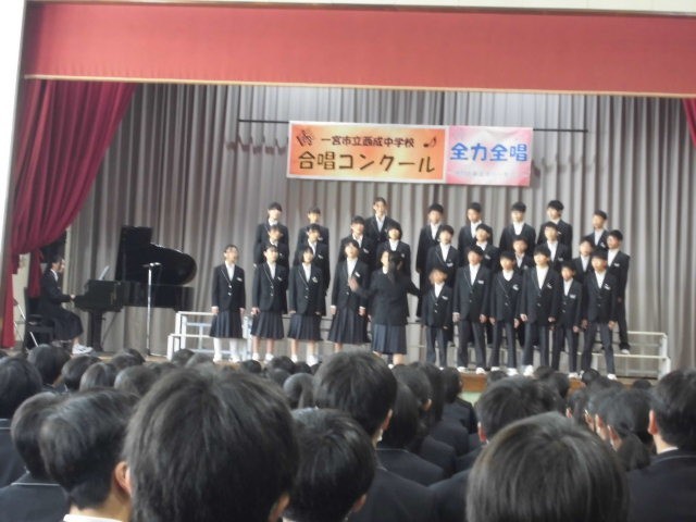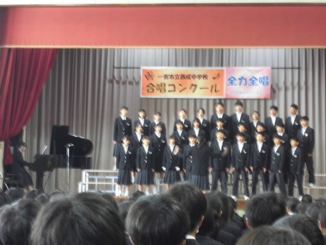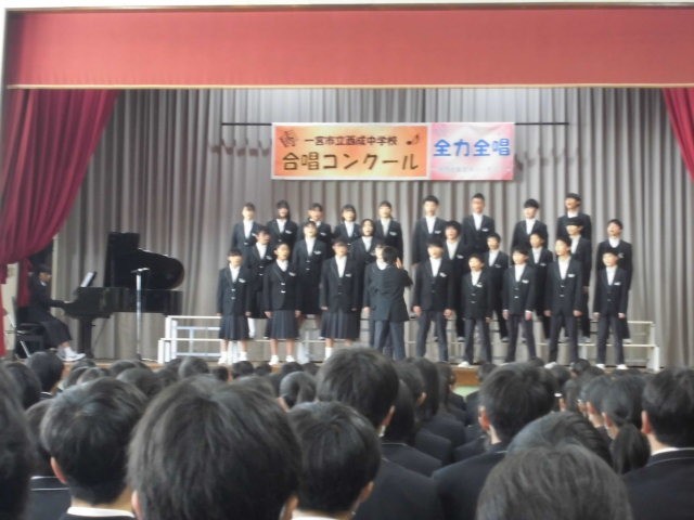 1年生は、初めての合唱コンクールです。緊張しながらも、明るく、生き生きとした歌声で、精いっぱい歌いました。