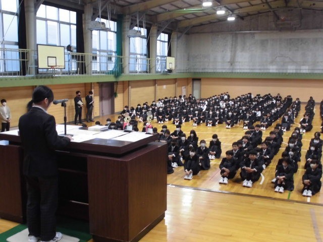 今日の集会で保健委員会から「メディアコントロール週間」について説明がありました。テスト週間中には、テレビやゲーム、スマホなどの電子メディアの利用を自分自身で制御できるように全校生徒に呼びかけました。