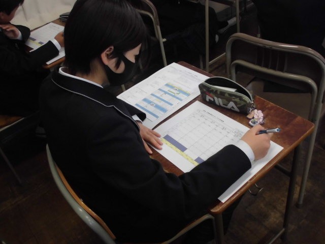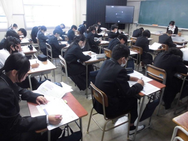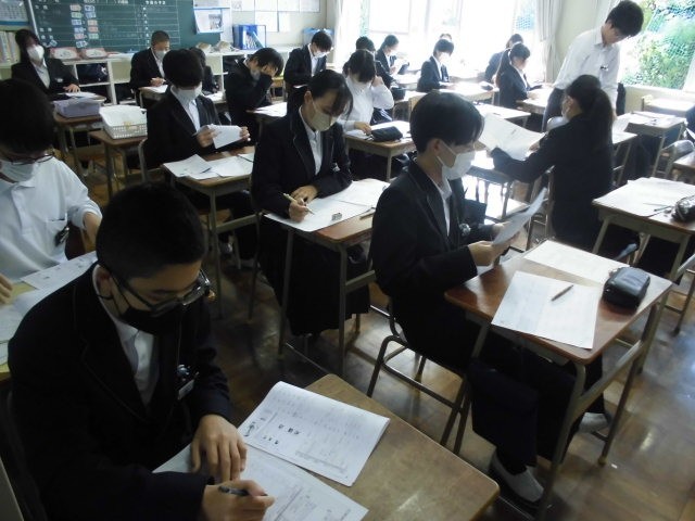 今日、2学期末テストの範囲を発表しました。1時間目にテスト勉強の計画を立てました。計画的に勉強をし、自信をもってテストに臨んでほしいと思います。
