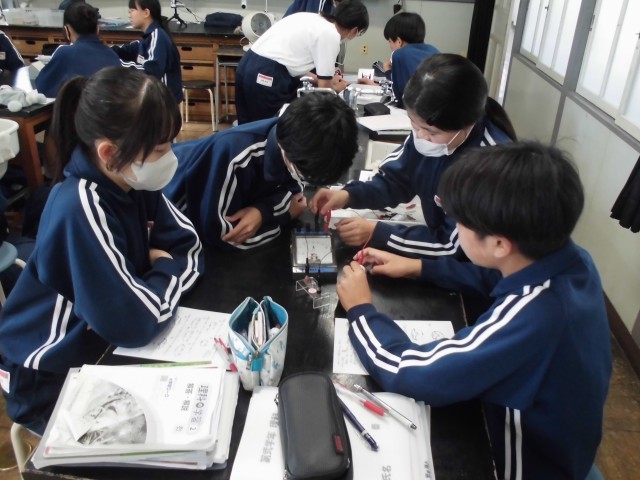 11月26日(水) 2年生 電流計の使い方 公開日 2025/11/26 更新日 2025/11/26 3年生 2年生の理科の授業では、既習の電流計の勉強を踏まえ、実際に理科室で使ってみました。正しく使うことを学ぶことで、現象に対する理解がより深まりました。