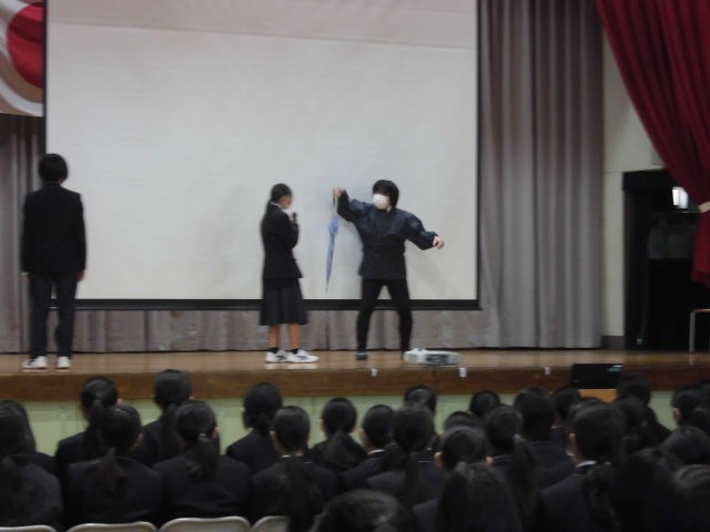 本日の認知症サポーター養成講座は、西成連区地域づくり協議会福祉安全部会の事業の一環として行いました。一宮市地域包括支援センターの方に来ていただいて、ご指導いただきました。テンポのよい講義や、子どもたちを引き付ける劇などで楽しく学ぶことができました。