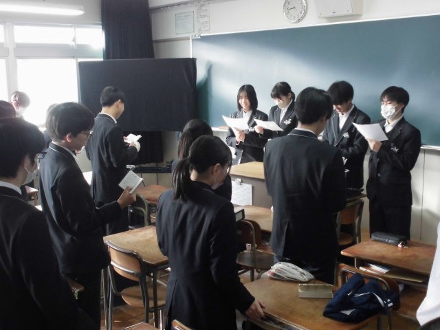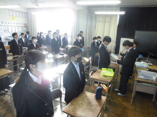 朝の短学活の時間に、全学年の各クラスで西成中の「いじめ撲滅宣言」を唱和しました。クラスのリーダーが先導し、全員が「いじめは絶対に許さない」という意識を高くもつことができました。