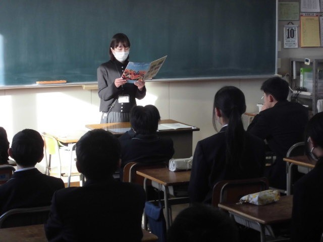 人権擁護協力会が発行する「種をまこう」という冊子が各クラスに配られました。あるクラスでは、その冊子に掲載されている全国中学生人権作文コンテストの優秀作品を、担任の先生が朗読して紹介しました。自分自身の行いを振り返るきっかけになる作文で、みんな真剣に聞いていました。