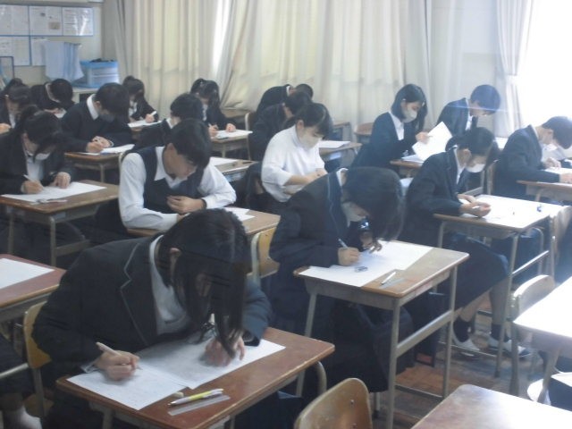 今日と明日の2日間で、3年生は単元テストを行います。今朝もノートを片手に勉強しながら登校してくる姿を見ました。テスト中もみんな真剣です。学年末の成績にかかわる大切なテストです。全力を尽くしてほしいと思います。
