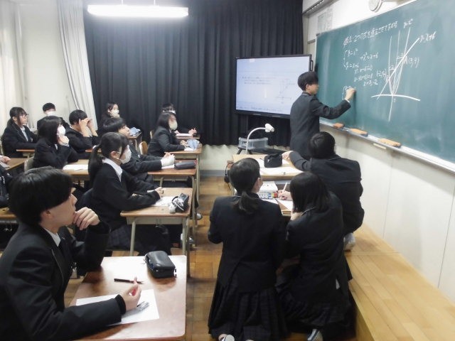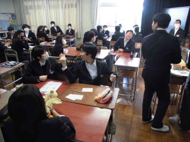 準備をしてくれた各クラスのリーダーはもちろん、そのリーダーの努力に応え、楽しく挑戦する3年生のみなさんの姿がすばらしい。学習でも盛り上がれるのは、入試を控えた3年生ならではの光景ですね。