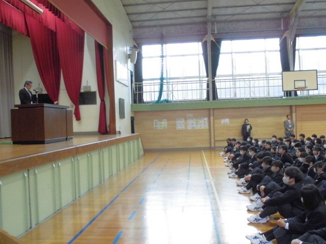 2学期終業式を行いました。校長先生の式辞に加え、各担当の先生から生徒指導や交通安全の話を聞きました。