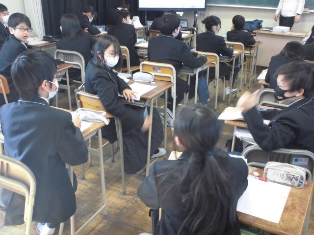 1月9日(金) 1年生 意見を伝え合いながら 公開日 2026/01/09 更新日 2026/01/09 1年生 社会科の歴史の授業で「中世の日本」について学んでいます。今日は、友だちと意見を伝え合いながら、元寇が日本に与えた影響について考えました。