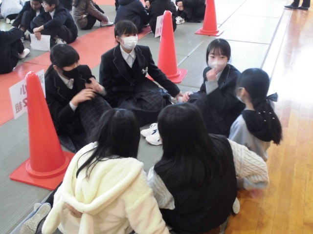 入学説明会では西成中1年生と小学校6年生の交流会を行いました。中学校生活を紹介したり質問に答えたりして、入学前の小学生の不安を和らげるように1年生の生徒たちが頑張ってくれました。