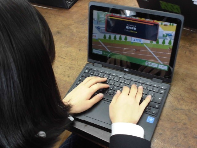技術の授業で、タイピングの練習をしました。タイピングソフトを利用して、ゲーム感覚で速さや正確性を競いました。キーボードを見ずに、五本の指をつかってできるようになりたいですね。