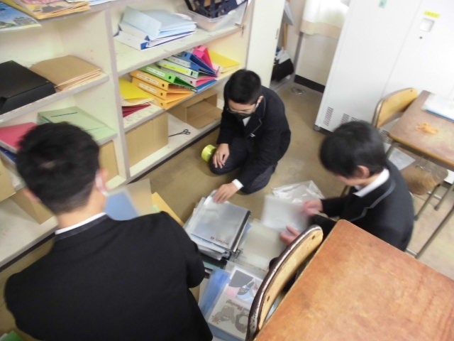 今日は半数程の生徒が公立高校の一般選抜に出かけています。そんな中、学校に登校した人たちで、時間を見つけて愛校活動を行いました。普段はなかなか手を付けることができない場所の掃除や、特別な部屋の荷物の整理などを行いました。