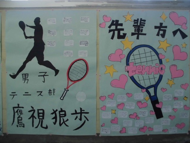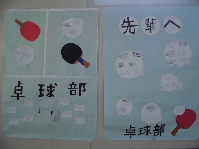 3年生が使用する廊下の壁に、部活動ごとに先輩へのメッセージが掲示されています。お世話になった先輩方への感謝の気持ちが綴られていますので、3年生はぜひ読んでください。