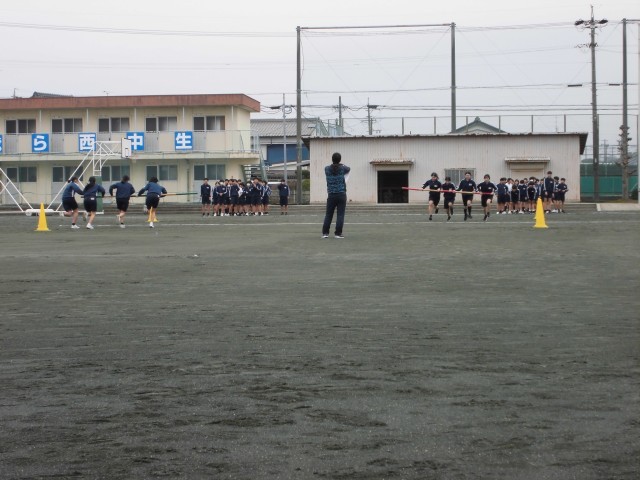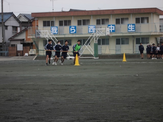 本日、2年生は1時間目に合同体育を行いました。台風の目をクラス対抗で行いました。