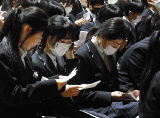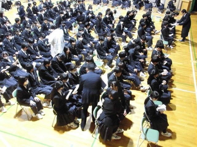 保護者の方からいただいた手紙を読みました。お父さん・お母さんの気持ちが伝わり、読みながら涙を拭う生徒もいました。これまで育ててもらったことに感謝するとともに、これから精一杯生きていこうという決意をしました。