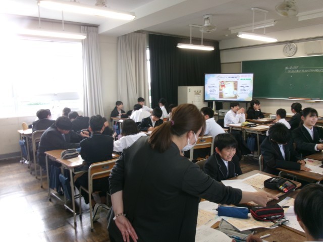 本日の学校公開日では、道徳の授業参観がありました。生徒たちはグループで意見を活発に出し合う姿を保護者の方々に見せることができました。