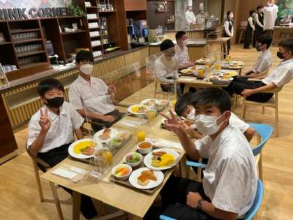 おはようございます。修学旅行2日目となりました。みんな元気です。黙食を守って、いただきました。