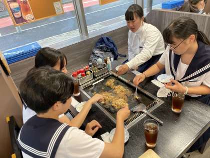 6月15日(水)修学旅行 (もんじゃ焼き) 公開日 2022/06/15 更新日 2022/06/15 3年生 もんじゃ焼き。自分たちで作って食べます。初めて作るのに、思わぬ才能を発揮する人、続出でした。