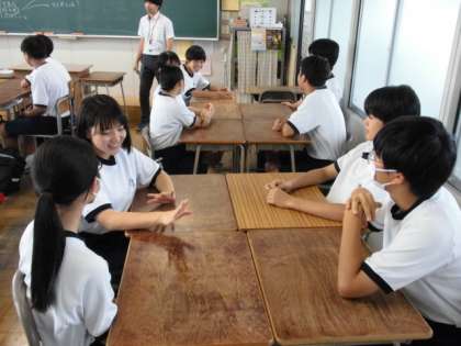 今年度の最初から靴下の色の幅が広がり、2学期から靴の色の幅も広がりました。体育祭で着用する靴や靴下をどのようにしたらよいか、各学級のリーダーや生徒会執行部に集まってもらい、話し合いました。
