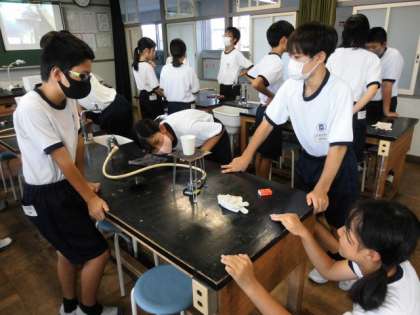 理科の授業で、紙コップでお湯が沸かせるか考えました。大切なことは、これまでの学習で身に付けた知識や生活経験から、自分なりの予想ができることです。