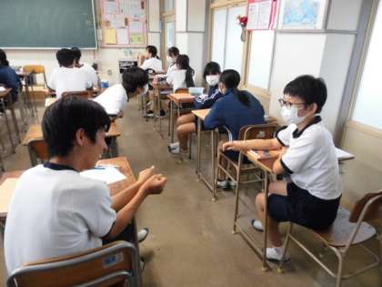 9月6日(水) 3年生 テレビ番組を例にして 公開日 2023/09/06 更新日 2023/09/06 3年生 社会科の授業で「自由権」について学んでいます。私たちが個人として尊重され、人間らしく生きることを保障する権利です。人気のテレビアニメの番組のシーンを例にして、「身体の自由」について理解しました。よく知っているテレビ番組に関連させると分かりやすいですね。