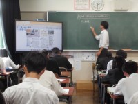 数学の授業で「三平方の定理」について学んでいます。今日はその定理を利用して、富士山の頂上から見わたせる範囲を求めました。順を追って考えていくとよく分かります。友だちと話し合いながら進めました。でも、計算は面倒くさい!