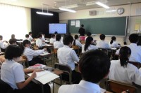 1月16日(火) 2年生 学んだ知識を使って 公開日 2024/01/16 更新日 2024/01/16 2年生 理科で「電流と磁界」について学びました。今日はリニアモーターのしくみを勉強しました。リニアモーターとは、直線的に動くモーターのことです。磁界の中にあるアルミパイプに電流を流すと、アルミパイプが動くことを実験で確かめました。 そのあと、友だちと確認をしながら、学んだ知識を使ってその原理を説明しました。
