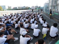 5月1日(水) 2年生 化学反応式 公開日 2024/05/01 更新日 2024/05/01 3年生 理科の授業で「物質の成り立ち」について学んでいます。今日は、化学変化を式で表す方法について勉強しました。化学変化の前後の物質の中の原子の種類と数に注意しながら、化学反応式を完成させます。 教科担任の先生が、ホワイトボードと原子のモデルを用意してくれました。原子のモデルを動かしながら考えると、分かりやすいですね