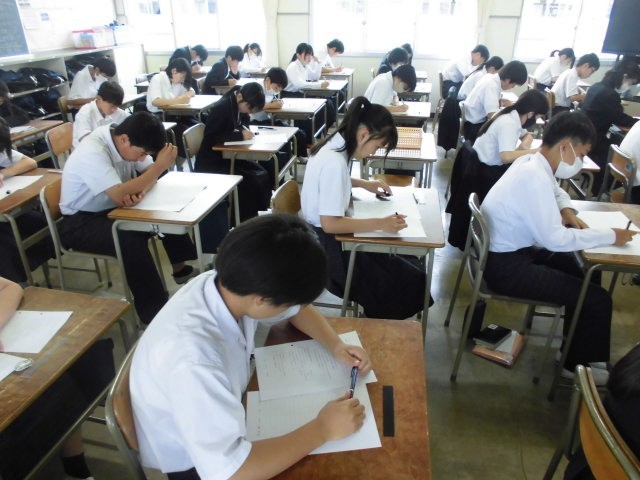 1時間目に、3学年とも平常テストを行いました。普段の学習の定着を確かめるためのものです。結果を確認してこれからの自分の学びに生かしてほしいと思います。