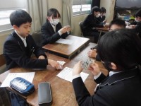 社会科の授業で、日本の歴史の時代が書かれた札を用いてカードゲームをしました。みん...