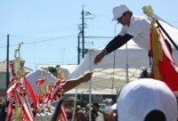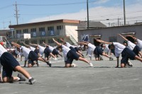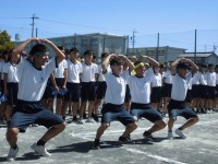 2年生の表現は「ソーラン節」です。腰を落とし、力強い動きとかけ声で、迫力のある演技でした。動きや隊形変換もそろい、学年の一体感を感じました。