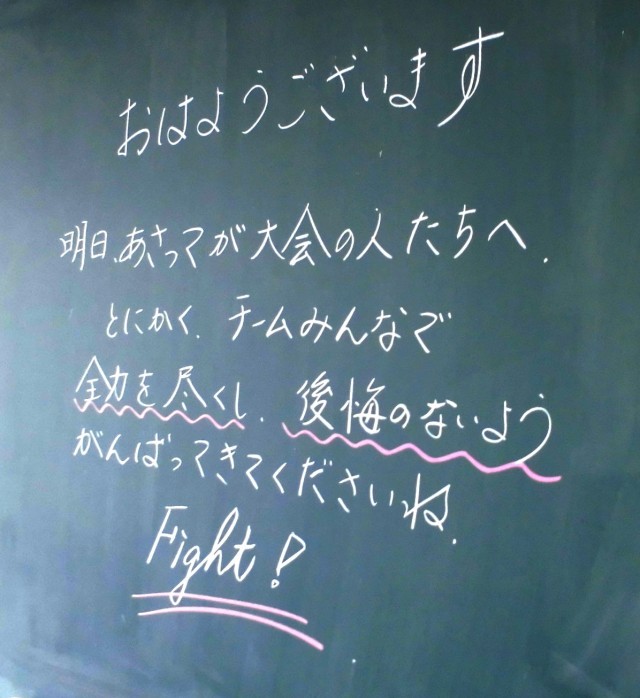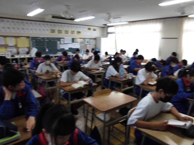 今日も、前向きな気持ちで1日のスタートを切っています。2年生のみなさんは、合唱コンクールや、明日、明後日の新人大会など、活躍する場面がたくさんあります。みんなで協力して前進していきましょう。